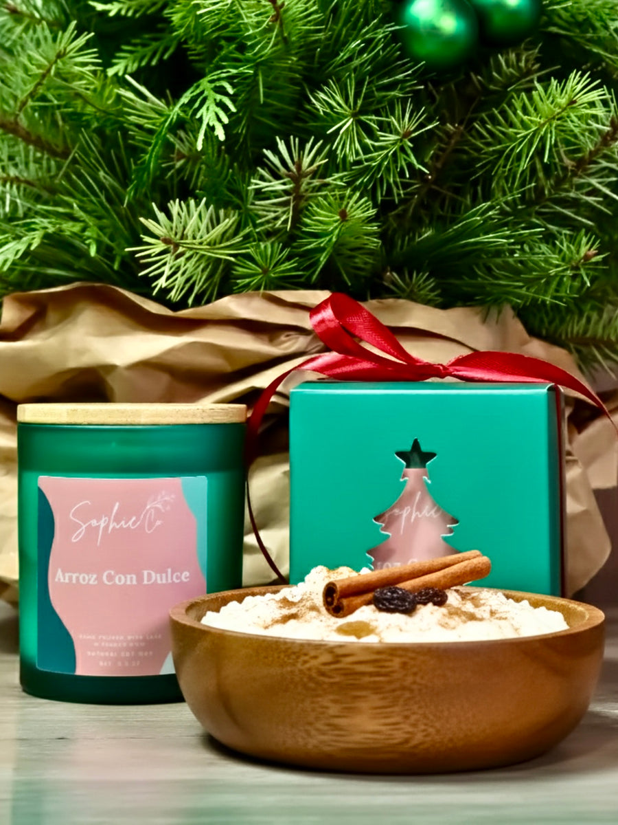 Sweet and spiced like the traditional dessert made with coconut element, cinnamon, vanilla, ginger and spice. Light it to fill your home with the essence of Puerto Rican Christmas traditions. What It Smells Like: Coconut Element Cinnamon & Vanilla Ginger & Spice Sugar About our candles: Handmade with love 100% soy wax Cotton wick for a clean, even burn Reusable matte green glass container Natural wood lid
