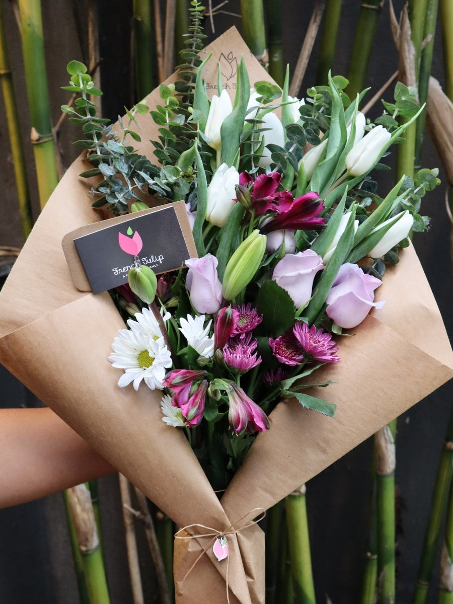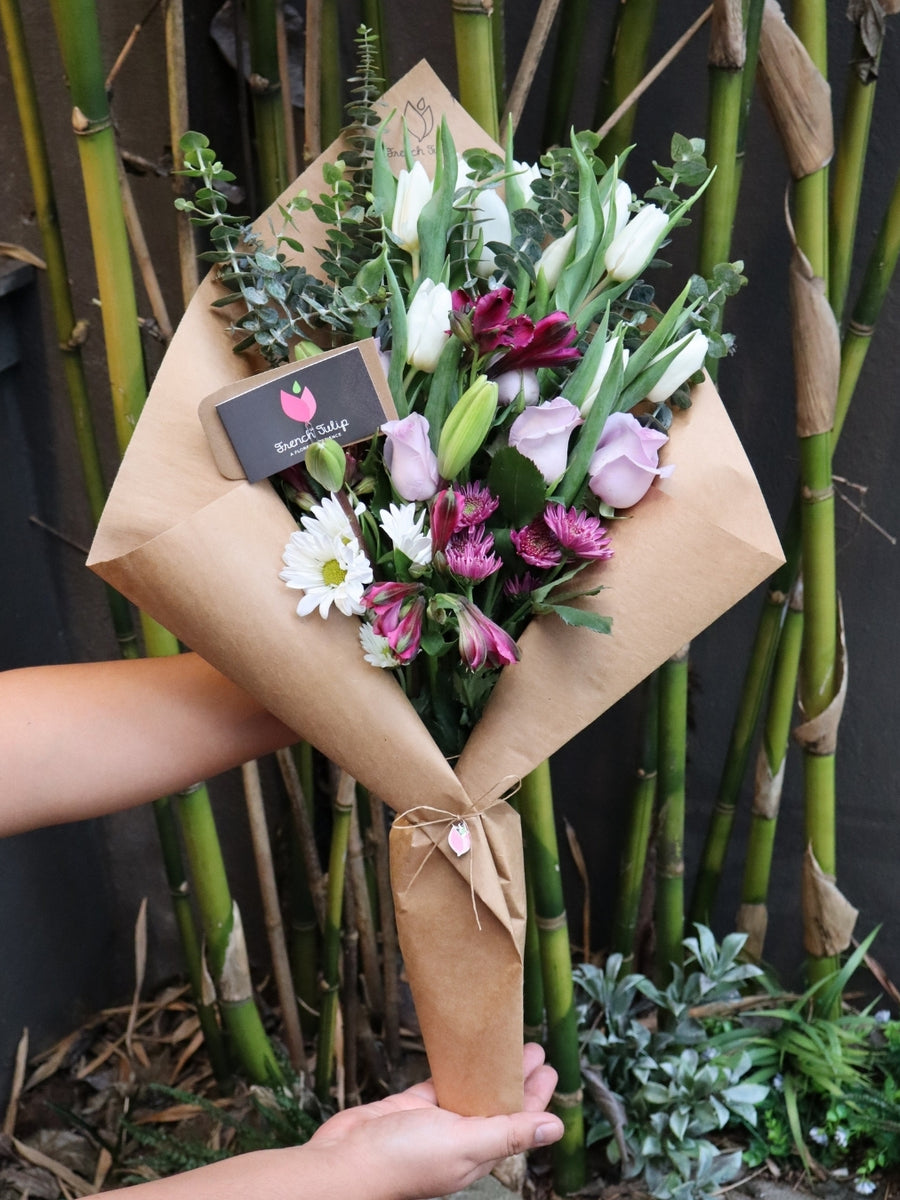 En French Tulip nos aseguramos de utilizar flores frescas para crear cada arreglo y ‘bouquet’. No somos responsables de la durabilidad de las flores que salen de nuestra floristería. Nuestro producto es natural y delicado por lo cual puede deteriorarse con rapidez por diversos factores, tales como: la temperatura del ambiente, la deshidratación y la humedad del lugar donde se encuentren entre otros. De no estar satisfecho con el producto recibido, el producto debe devolverse en las próximas 12 horas en la localidad donde se compró para recibir devolución o crédito por el mismo.