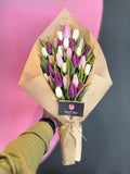 Discover the radiant beauty of our multicolored tulip bouquet, a signature offering from French Tulip, based in the heart of Puerto Rico. This stunning arrangement showcases a vivid collection of fresh, tulips, each bloom hand-selected for its vibrant color and vitality. Wrapped in eco-friendly, rustic brown paper that complements the natural elegance of the tulips, this bouquet embodies the spirit of island elegance. Perfect for any occasion, from birthdays to just-because moments, our tulip bouquet brings a touch of Puerto Rican charm to your doorstep. Ideal for those looking to brighten their home or surprise a loved one with a thoughtful, eye-catching floral gift. Experience the allure of Puerto Rico with French Tulip's exclusive tulip bouquet.