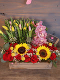 Los colores de las flores en nuestros bouquets y arreglos se trabajan a discreción de los floristas según su disponibilidad.