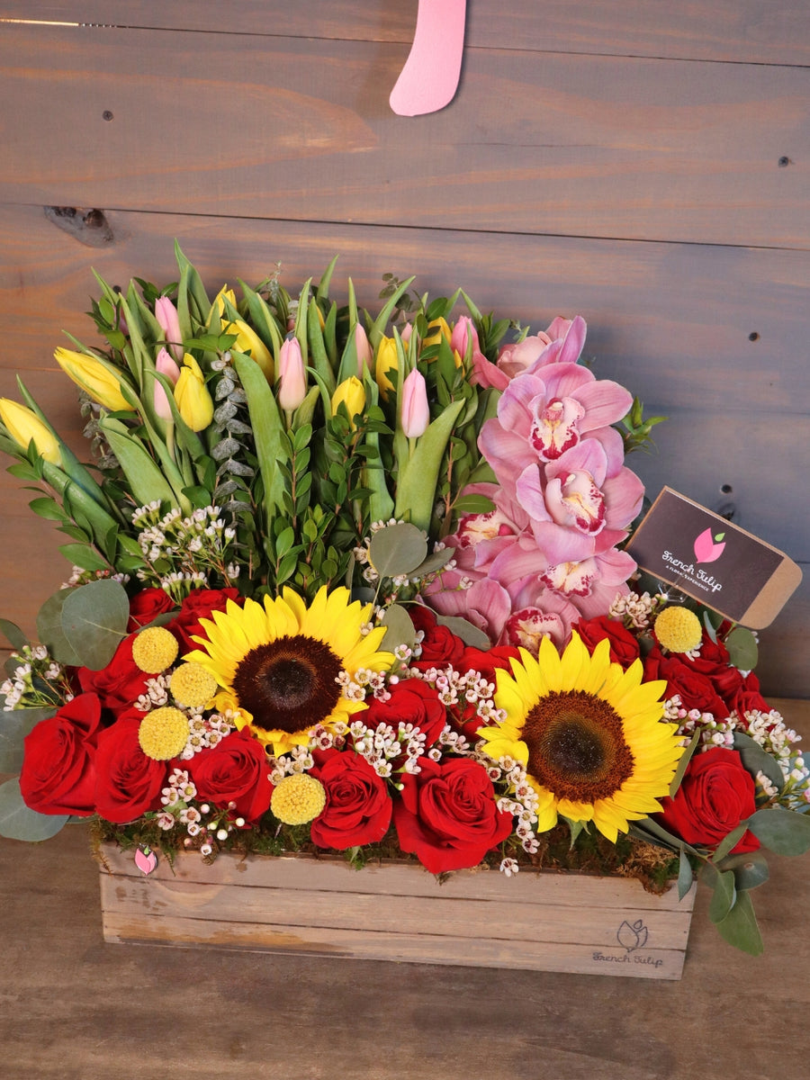 En French Tulip recibimos flores con una selección variada de colores semanalmente por lo cual es difícil replicar todos los productos de manera exacta. Las fotos utilizadas son para referencia del diseño y composición del producto.