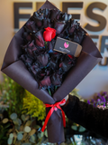 Celebrate your special someone as your 'One in a Million' with this exquisite bouquet featuring a solitary red rose nestled among two dozen deep black roses, symbolizing love and passion. Now available in an elegant all-black arrangement.  Este arreglo estará disponible por tiempo limitado.