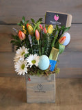 Discover the joy of Easter with our special Tulip Garden 5x5 from our exclusive Spring Collection! Filled with vibrant colors tulips, lush greenery. This delightful arrangement will fill you with delight and joy. Plus, it comes with a Godiva Mini Bar for a delicious surprise! Will you be the one to bring this joy to your home?