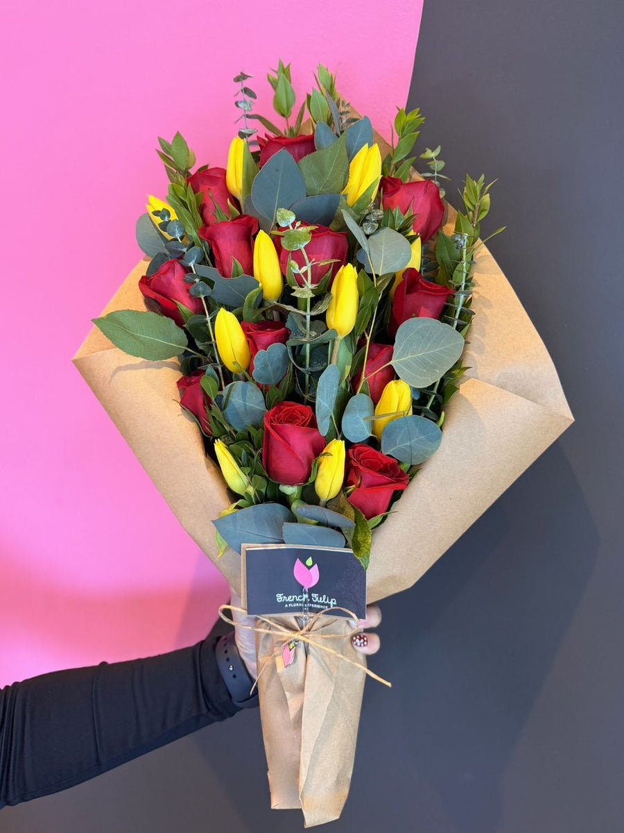 Ignite the spark of romance and affection with our exquisite “Love & Roses” bouquet, a captivating arrangement of luxurious roses and elegant tulips. Each bloom is thoughtfully selected to symbolize love, passion, and tenderness, creating a harmonious blend of classic beauty and fresh charm. Perfect for expressing heartfelt emotions, this bouquet transforms any moment into a memorable celebration of love.